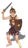 | LE GLADIATEUR Taille : 8-10 ans Comprend : Une tunique, une ceinture, des manchettes et guêtres. Tarif : 12.90 € TTC Réf : E430 | | ROMAIN Taille : 10-12 ans Comprend : Une robe avec cape, un bandeau, une ceinture et des bracelets. Tarif : 9,90 € TTC Réf : E472 | | ROMAINE Taille : 10-12 ans Comprend : Une robe et un châle. Tarif : 9,90 € TTC Réf : E471 | | PETIT CENTURION Taille : 3 ans Comprend : Un pantalon, un haut, une armure, une cape et un casque. Tarif : 10,00 € TTC Réf : E494 |  | |