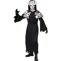 | MAITRE DE LA CRYPTE Taille : XL Comprend : Une robe avec capuche, chaine et imprimé sur le torse, un masque tête de mort et une arme. Tarif : 23,90 € TTC Réf : A1452 | | SKULL WARRIOR Taille : M/L Comprend : Une tunique avec capuche, un collier, une ceinture et une arme. Tarif : 17,90 € TTC Réf : A1451 | | SQUELETTE ROUGE Taille : M/L Comprend : Une robe à capuche et une ceinture. Tarif : 14,90 € TTC Réf : A1453 | | SORCIERE MALEFIQUE Taille : XL Comprend : Une robe, une coiffe et une ceinture. Tarif : 27,90 € TTC Réf : A1454 |