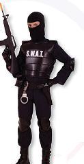 Comprend : Une combinaison, gilet pare-balles, une ceinture avec holster et bourse, des genouillères, des protections pour coudes, un fusil et une cagoule.